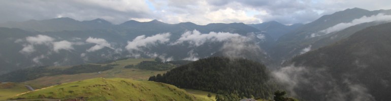 Georgia is instantly beautiful. There’s something about green hills that appeal to a man living on the edge of a desert, and Georgia delivers before you’ve even left the city limits. The hills are gentle and pleasing right into the wine-growing region of Kakheti, where we swapped our minivan for a Land Cruiser 4WD. Once in the Land Cruiser, the landscape got serious. We plunged into a river valley, steep, deep green and pine treed either side and rushing, rocky blue waters in the middle. For two hours, Salome and I stared out of the windows with the same childish joy in our faces. Only periodic motion sickness could take our minds off the nature show going on outside. On the road we jostled with Border Police trucks, winded and climbed, past the tree line and into the clouds, over a pass at about 2900m and then began descending. We looked down on a valley below bathed in sunshine, bottomed out near the rushing Alazani River, and wound steadily up to our destination.
