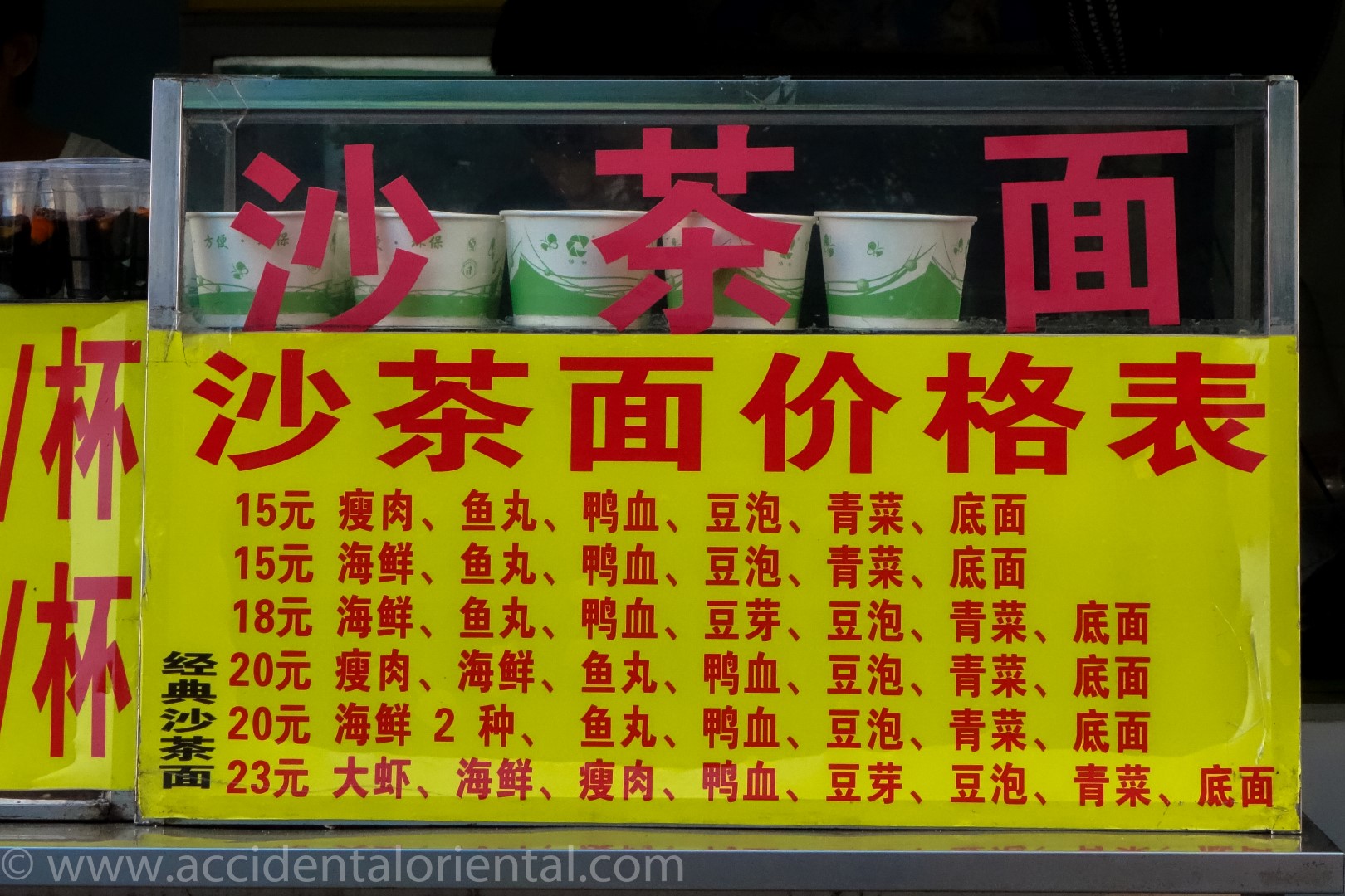 White paper bowls ready to be filled with shachamian (沙茶面) in the streets near Xiamen University