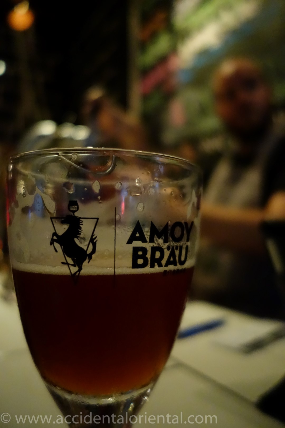 Fresh ale, brewed on site at Amoy Bräu in the Shapowei area